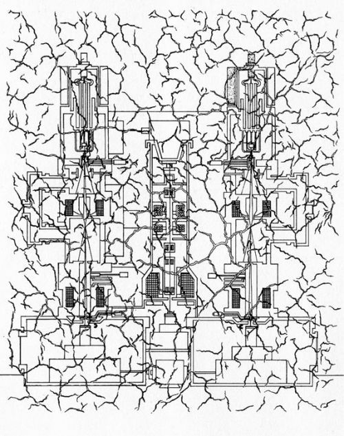 2 / 11 Katabolische Linien – Untersuchung der Risse in einem Fresko der Sixtinischen Kapelle durch Laser1973Tusche 27 x 22 cm